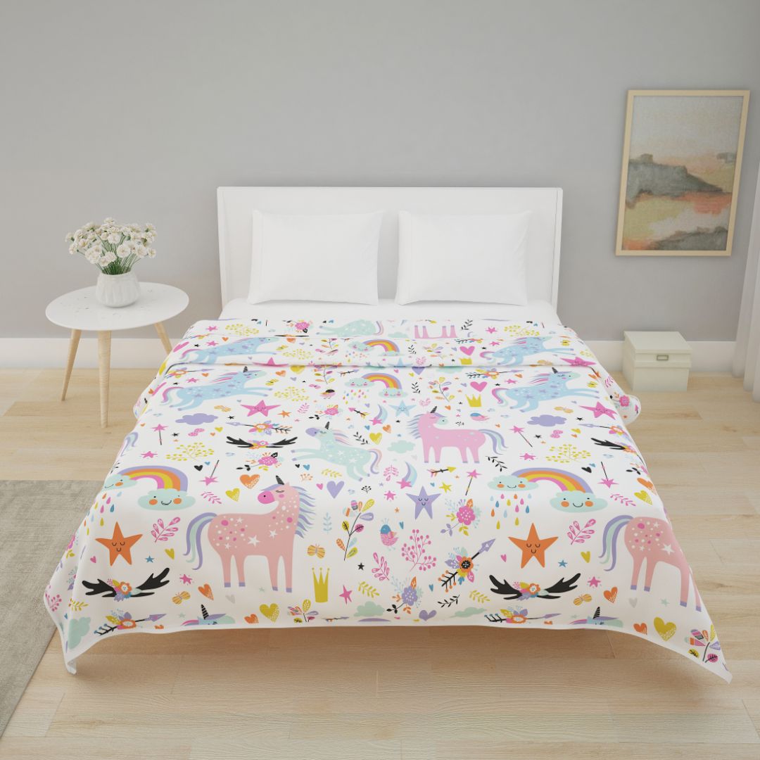 All our Dohars have double fabrics. Top side is digital printed and back side is any matching solid color fabric with the same color border. The back side has a hidden zipper in a flap so that these can be even used as Duvet Covers.