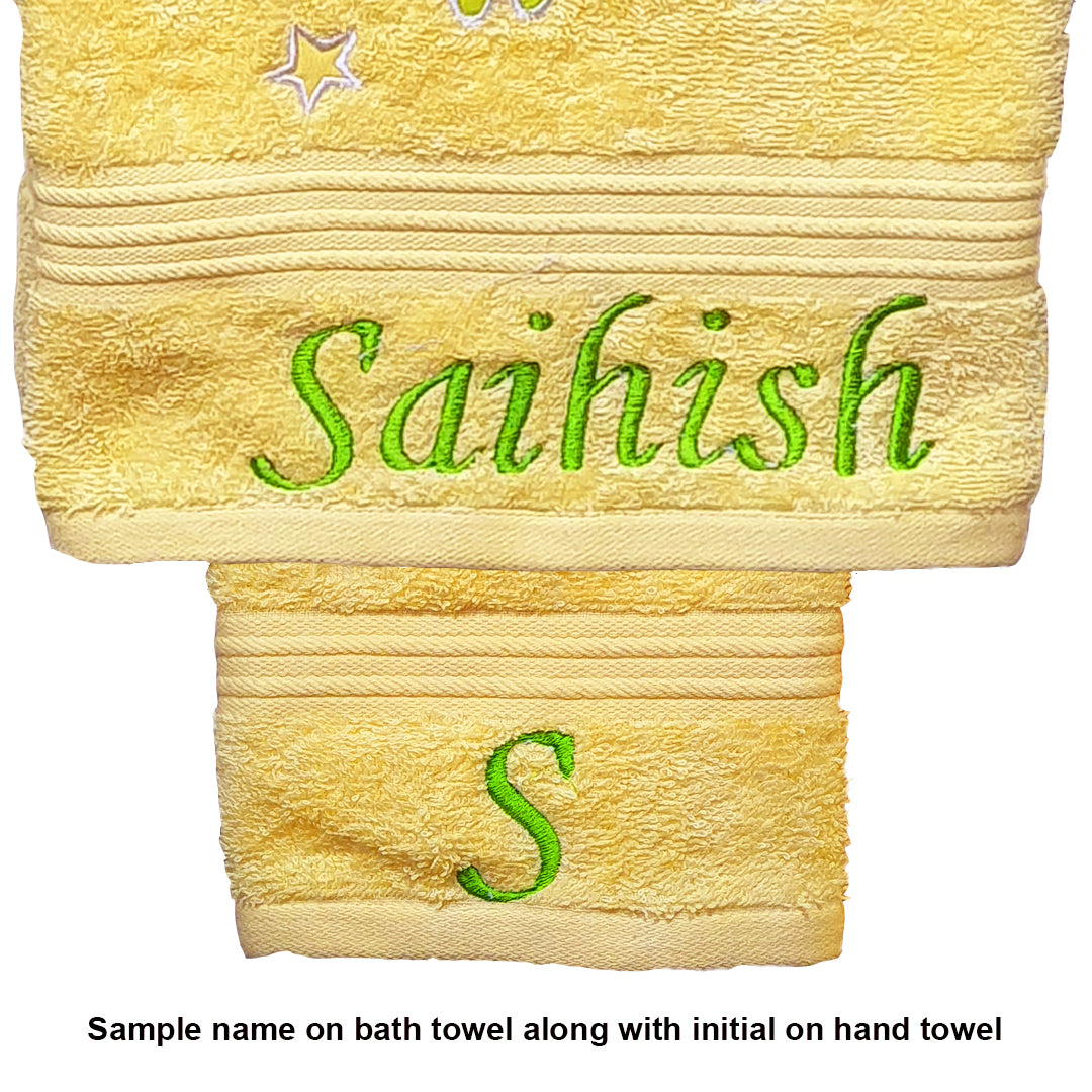 Our appliquéd embroidered terry towels sets are a pack of one bath towel along with a hand towel. Bath towel size is 24” x 48” (60 x 120 cms) with a weight of 340 grams and hand towel size is 16” x 24” (40 x 60 cms) with a weight of 112 grams. These are very high quality 450 GSM (Grams per square inch) towels, in attractive colors with cute appliquéd and embroidered motifs in different themes. These are 100% terry cotton towels and made from extra-long staple Egyptian cotton and specially treated for maximum softness, higher absorbency and a quicker dry time. Super water absorbent skin friendly fibers dry and warm your kids instantly. Having their name and favorite appliques on the towel, makes your child feel loved and special. We have come up 18 unique designs in 8 attractive colors at present. For personalization, please send the name of the child by via email at support@sweetheartcreations.com, call or WhatApp on 8779250858